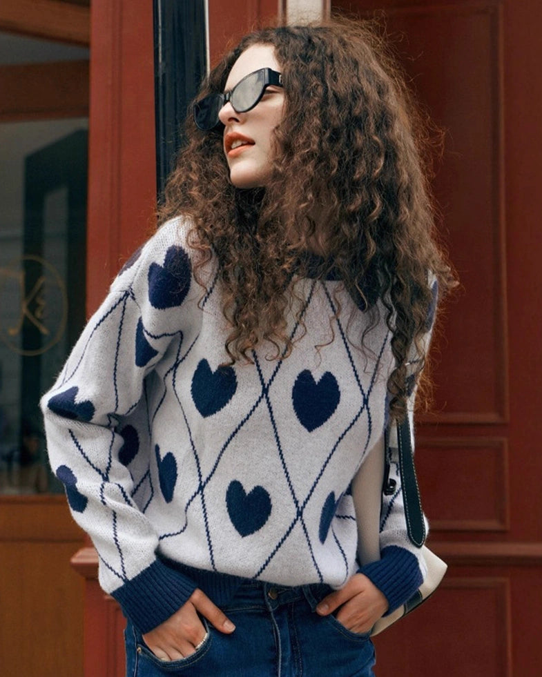 Women's ethnic style long-sleeved round neck Fair Isle sweater