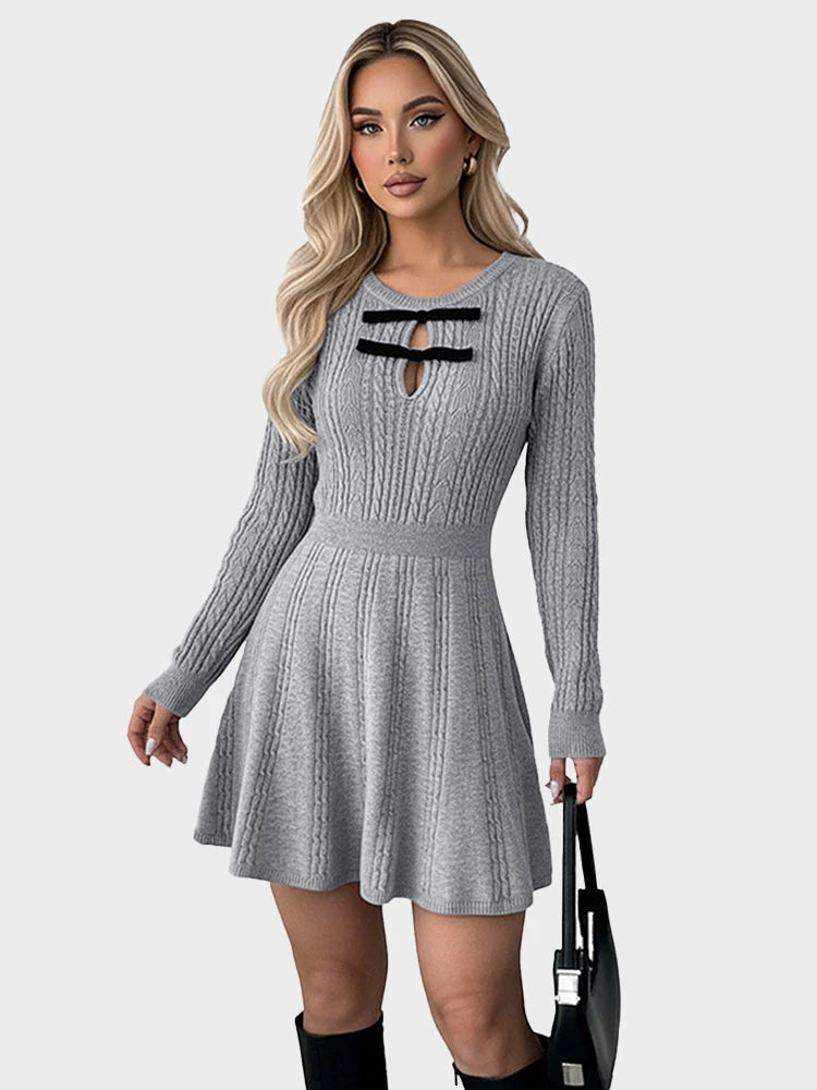 Women Crew Neck Mini A-Line Knit Fall Winter Casual Sweater Dress