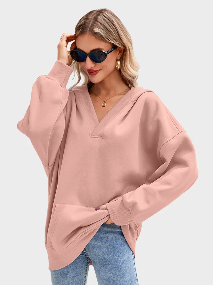 Women's Oversized Hoodies V Neck Pullover Sweatshirt with Pocket