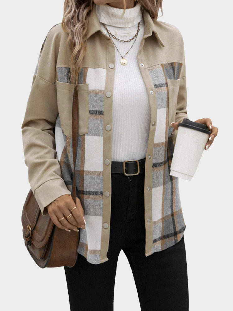 Women's retro-style collared pocket plaid shirt
