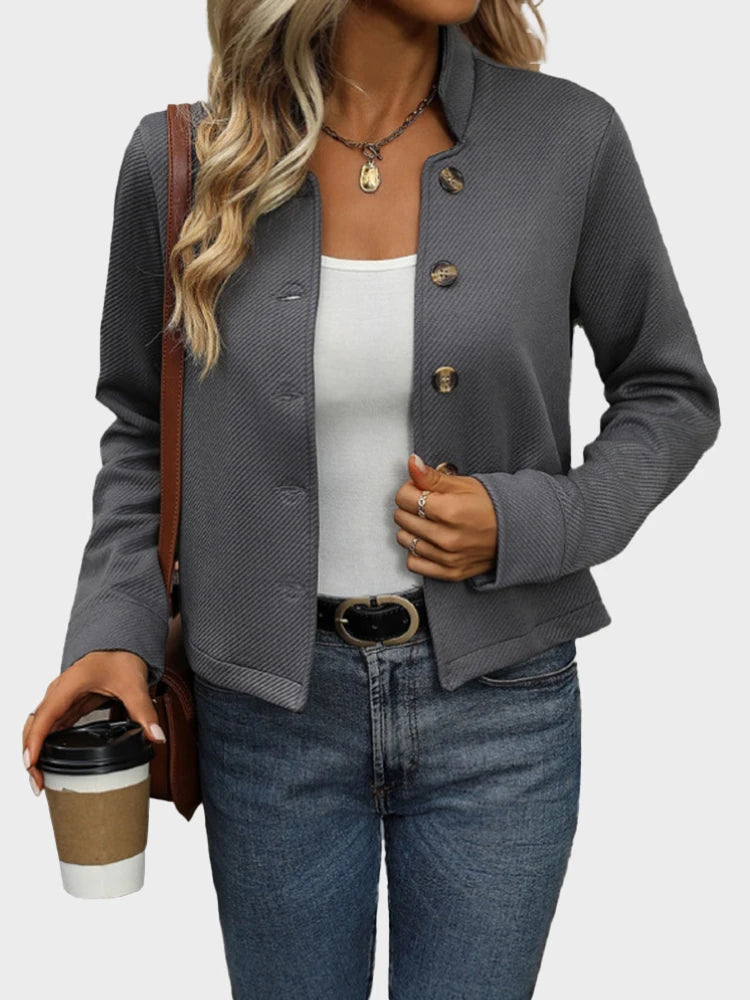 Women's Stand Collar Jacket Pocket Single Breasted Short Coat
