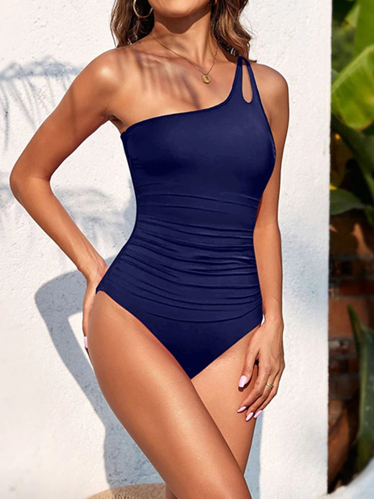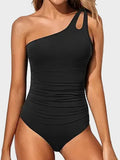 One Shoulder Swimsuit with Tummy Control & Keyhole Detail