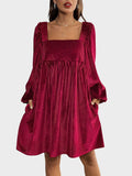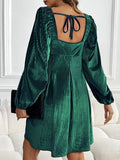 - 1. Elegant Design: The Women Long Sleeve Backless Velvet Mini Dress features a sophisticated square neck and an elegant tied design, making it the perfect choice for any cocktail party or special occasion.