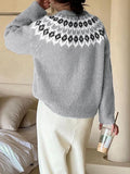 Women's ethnic style long-sleeved round neck Fair Isle sweater