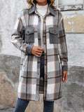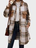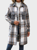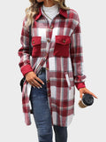 Women's Plus Size Long Flannel Plaid Shacket Jacket